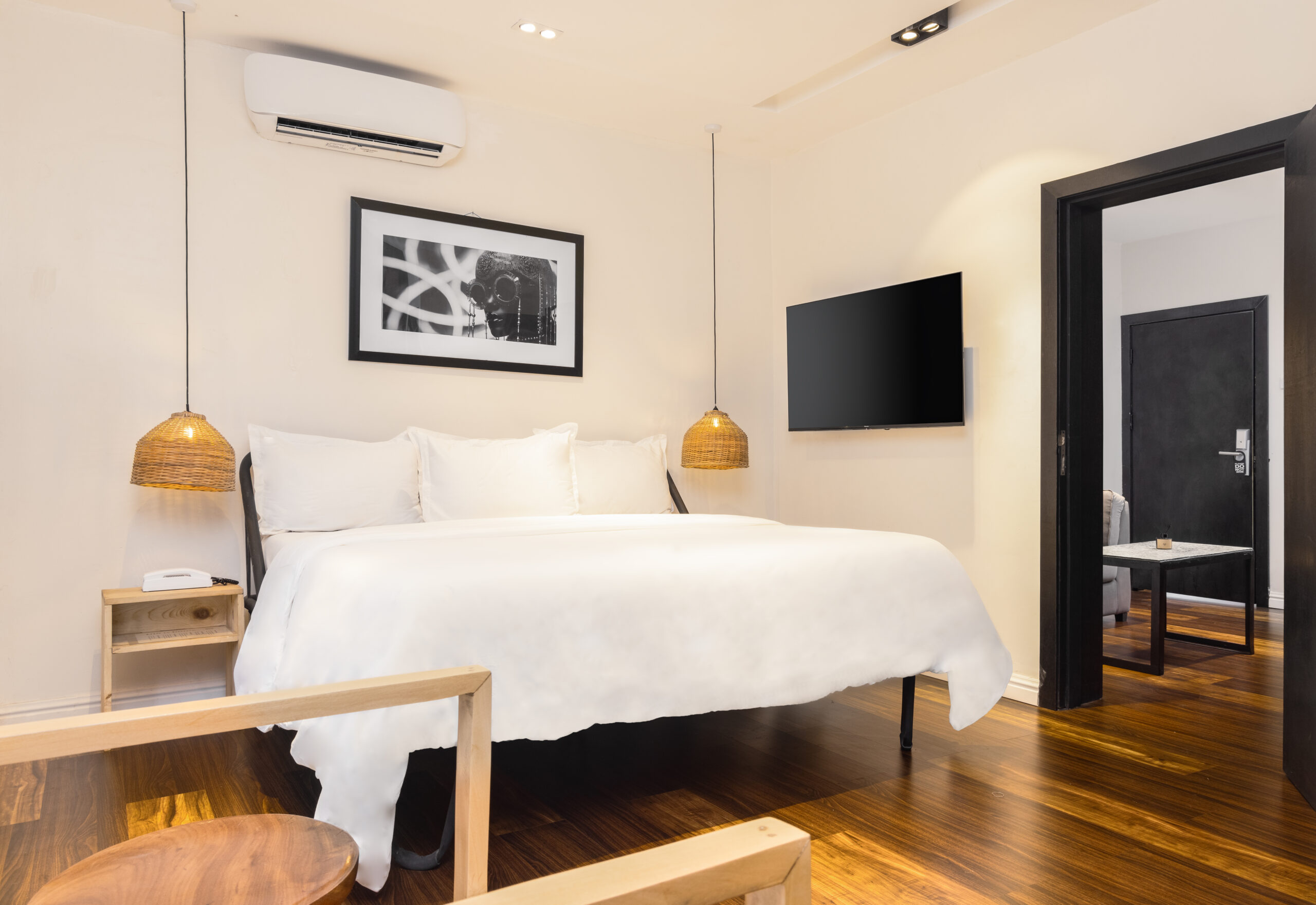 Experience the perfect blend of comfort and independence in our One-Bedroom Apartment, ideal for extended stays or travelers seeking a home away from home. This spacious apartment features a private bedroom with a luxurious king-sized bed, premium linens, and blackout curtains to ensure a restful night’s sleep. The apartment boasts a separate living area with a cozy sofa, a dining table, and a flat-screen TV for entertainment. The fully equipped kitchen is perfect for preparing your favorite meals, complete with modern appliances, cookware, and utensils. Whether you’re cooking for yourself or enjoying takeout, the dining space adds a touch of convenience.